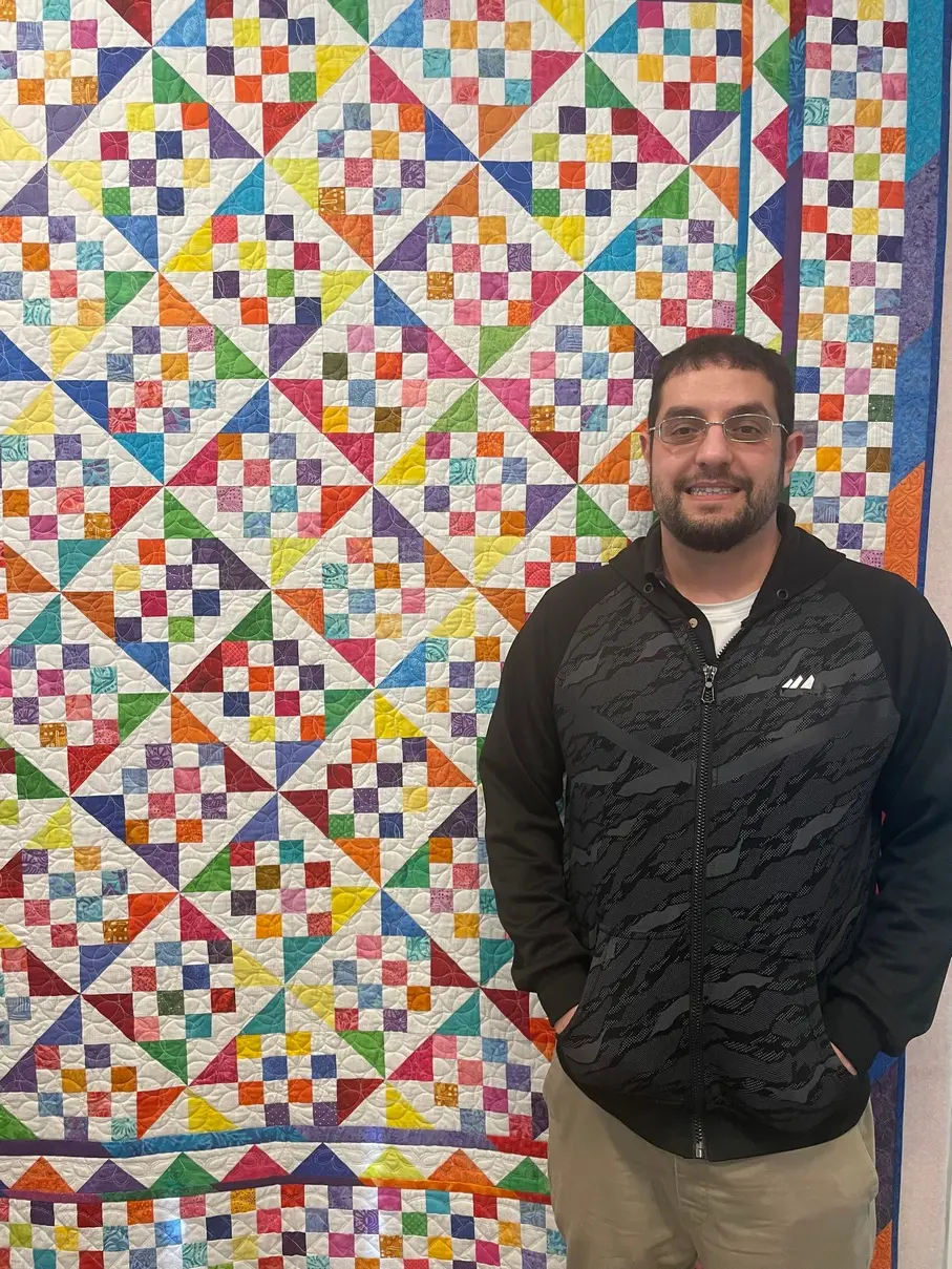 The 2025 raffle quilt was called Make Your Point. It was stunning! The winner of our beautiful Make Your Point quilt was Amin Bourouh. He loves it!